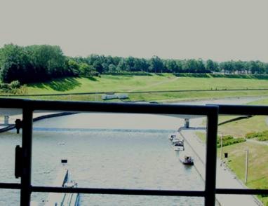 From Mons to Charleroi is very industrial and for years the economy was based on coal mining. Although we were entering the hilly country of the Ardennes, the hills around here were huge slag heaps. Charleroi was the nastiest, dirtiest area we had seen and we were glad to pass through without stopping and on to Namur. Namur is a small city at the junction of the Sambre and Meuse rivers in Belgium. The Meuse flows from France north through Belgium, becomes the Mass in Holland, turns west, joins the Rhine in the Hollands Diepe in Zeeland and empties into the North Sea. Namur is a beautiful small city with a huge citadel overlooking it from a high cliff. We arrived there early on Monday morning, July5th and moored in a Marina on the other side of the river Meuse from the city. About 10:00 a.m. we noticed crowds of people assembling on the street across the river from us. We found out that the Tour de France was coming through about 5:00 p.m., so at 3:00 p.m. we found a place on the route about 200 yards from the finish. We were amazed at the continuous parade of official vehicles advertising stuff and throwing free samples into the crowd. Interspersed with police vehicles and motorcycles, the whole Namur fire department and cars containing dignitaries this parade continued for more than two hours with not a bicycle in sight. If this continued for the whole tour, as I am sure it did, the amount of gasoline consumed must have been stupendous and at about $6 per US gallon not inexpensive. Well, finally, at 5:15 about 140 competitors, all tightly bunched together, went by in the blink of an eye at 40 miles per hour, followed by three stragglers, whom we cheered as they were the only ones we really saw. From Namur we headed up river to Dinant, the last village in Belgium, and crossed the French border at Givet, where we bought our permit to travel in France. We purchased thirty days of travel and we mark off a square with the date on each day we actually are moving on the water; days spent in harbor or on the river bank are not counted. This part of the river is very beautiful and has high cliffs on both sides with the villages strung out along the banks. There are many citadels perched on top of the cliffs, built and used though the centuries to guard the river. The river climbs steadily as it meanders through the Ardennes and the surrounding country side so we got lots of practice going up many locks. We stopped to visit castles and abbeys and at villages, one of which was having a medieval festival along the bank right beside where we were moored; a delightful experience. We arrived at the twin towns of Charleville-Mezieres where we tried unsuccessfully to do e-mail, but did manage to get a card for our phone so that we now have a French phone number. We arrived just at the start of a Marionette Festival, held here every three years. We also met a Seattle couple traveling on their barge that they had purchased earlier this year in Holland. They live on Bainbridge Island. Just after Charleville-Mezierere we turned off the river to head west along the Canal des Ardennes, still climbing steadily through locks to the summit. We then went down the other side, 27 locks in sequence over 9 km (5.6 miles) with no stops in between allowed. Another two locks took us to our moorage; we had traveled only 17 km in six hours. At our next stop at the village of Rethel we discovered that it was St Annes Festival with a big parade and a traveling amusement park of surprising size. We had some great people watching and ate a lot of food that wasnt exactly healthy. We shortly turned from our westerly route to go south towards the river Marne, which will lead us to the Seine and into Paris, eventually. Half way along this canal is the ancient city of Reims, where we are now. Well tell you more about that in our next e-mail. I hope that this e-mail is not too large for those of you without a broadband internet connection. I really wanted to show you the photos because I have never seen anything like these huge engineering structures before. We have many more photos of course and I will try to get some of them onto our website when we return to Seattle in September. It has been very difficult to find places to do e-mail in the small towns and villages so our next travelogue will probably be from Paris. Until then, have a great summer, we love to hear what you are up to. Patricia and Colin, On Fiesta |